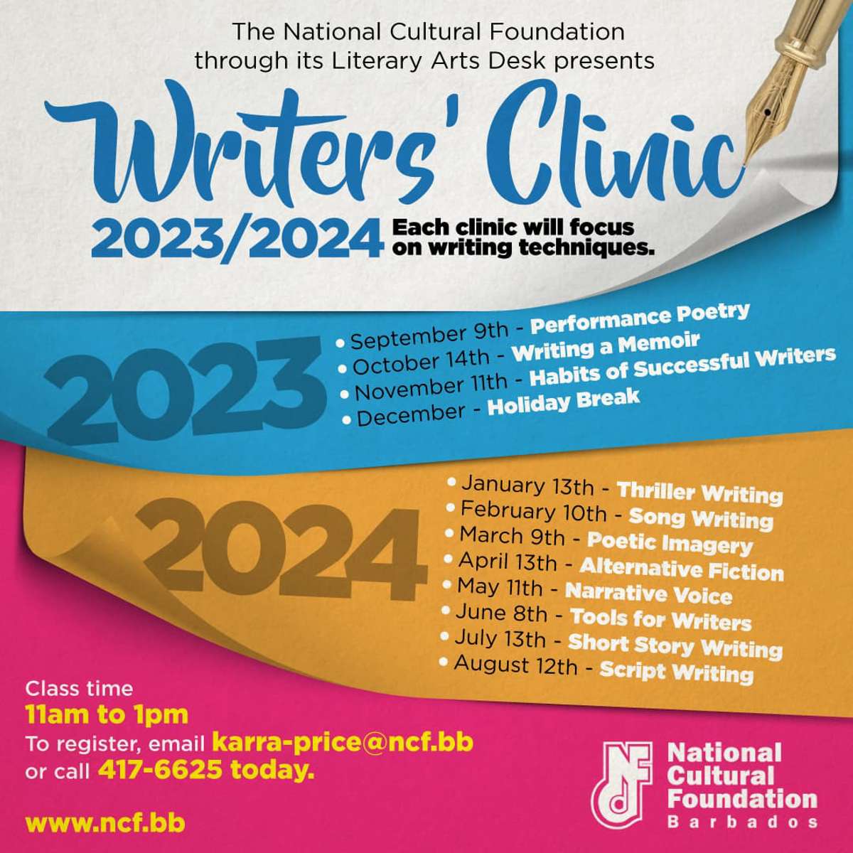 The NCF appreciates your support for the 2022/23 Writers' Clinic series.