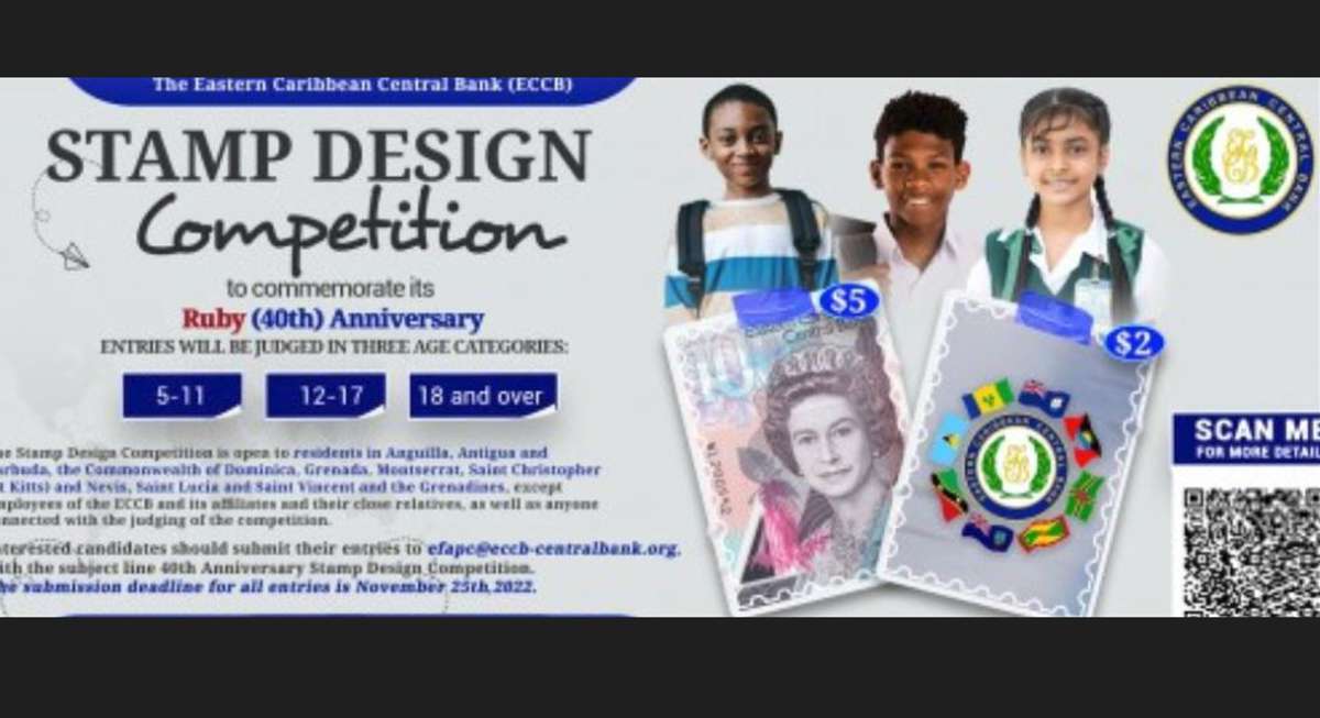 The Eastern Caribbean Central Bank (ECCB) has extended the submission deadline for its 40th Anniversary Stamp Design Competition. The deadline is now 25 November. In October 2022, the ECCB announced the stamp design competition to commemorate its Ruby (40th) Anniversary, which falls on 1 October 2023. The Stamp Design Competition is open to residents in the ECCB member countries: Anguilla, Antigua and Barbuda, the Commonwealth of Dominica, Grenada, Montserrat, Saint Christopher (St Kitts) and Nevis, Saint Lucia and Saint Vincent and the Grenadines, except employees of the ECCB and its affiliates and their close relatives, as well as anyone connected with the judging