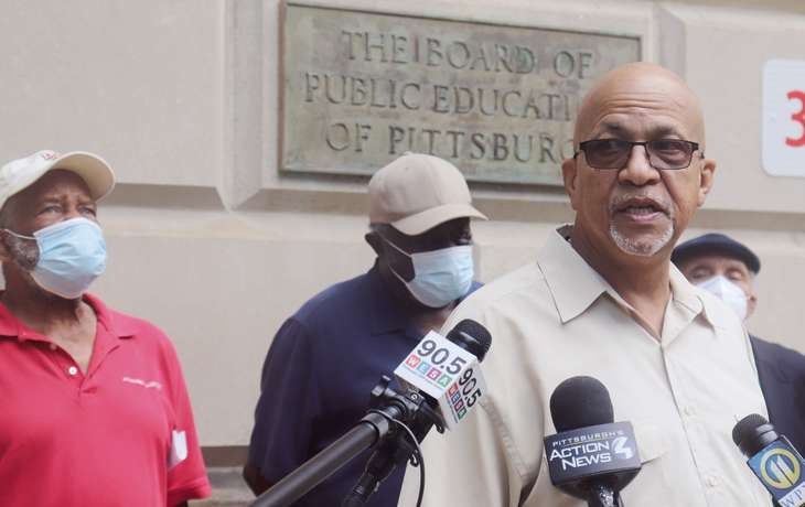 RICK ADAMS, co-convener of the Western Pa. Black Political Assembly, said on Sept. 7 that there is a “vicious effort” to undermine Pittsburgh Public Schools’ Black superintendent, Anthony Hamlet, Ed.D. He is calling on the school board not to listen to calls from some that Dr. Hamlet be removed from his position. (Photo by Rob … Continued