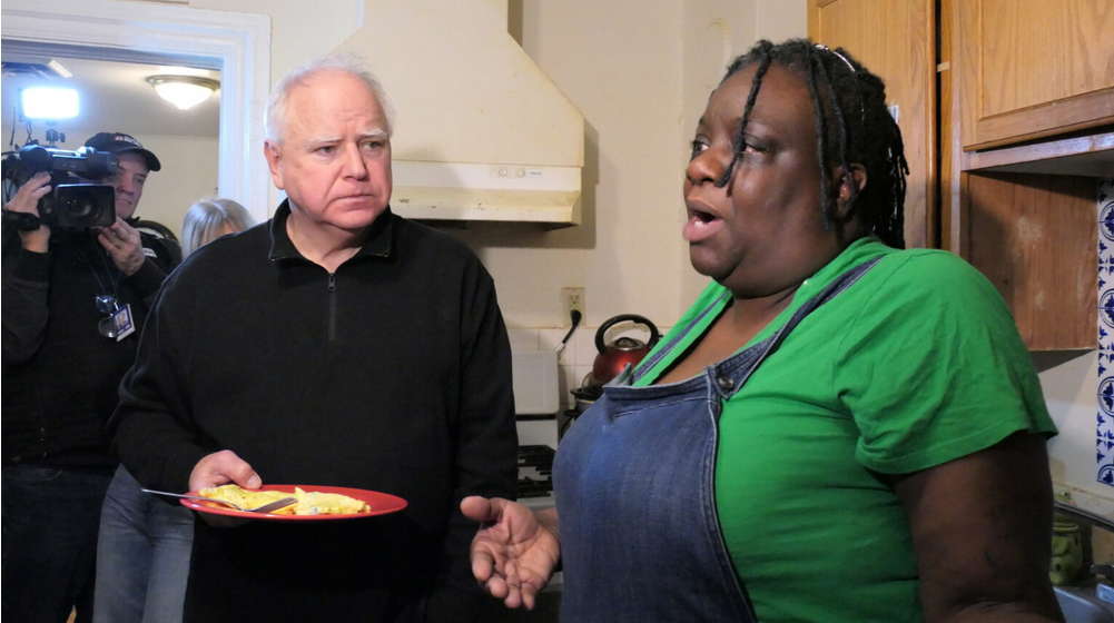 Gov. Tim Walz visited home care worker Felicia Johnson to highlight the 31 percent raise she and other home care workers will receive over the next two years.