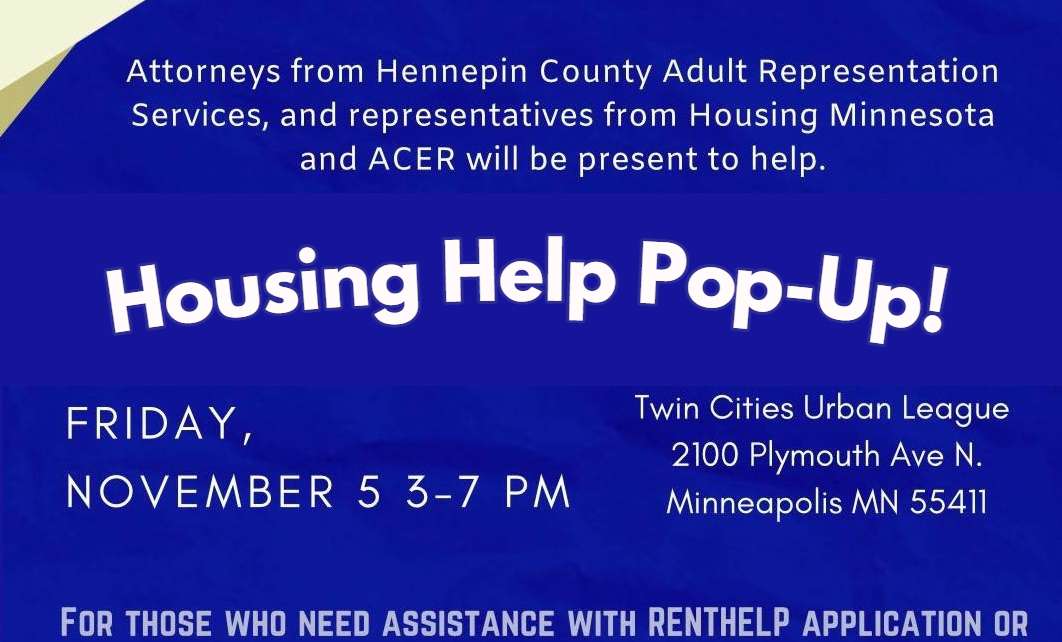 A free Housing Help Pop Up will be held on Friday, November 5 from 3-7 pm at the Twin Cities Urban League.