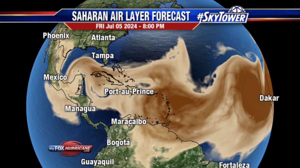 The National Weather Service has noted that dry air and a large plume of Saharan dust are forecast to arrive across Puerto Rico and the Virgin Islands on Friday and impact the islands this weekend.