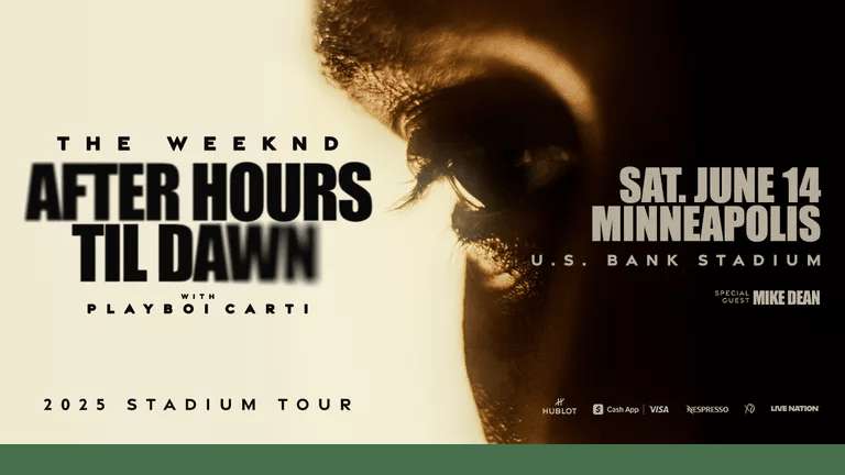 The Weeknd's After Hours Til Dawn Stadium Tour, featuring hits from his latest album and fan favorites from his previous albums, will be held at U.S. Bank Stadium in Minneapolis on June 14, 2025, with special guests Playboi Carti and Mike Dean.