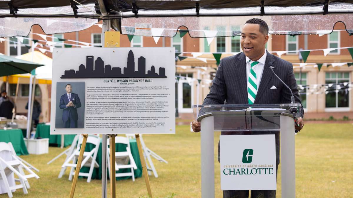 UNC Charlotte renamed the Dontá L. Wilson Residence Hall in honor of the business and university leader who has dedicated his life to inspiring hope among upcoming generations of students. Wilson is vice chair of the University’s Board of Trustees, Truist Financial Corporation’s chief consumer and small business banking officer and a member of the operational council. During a routine meeting, UNC informed Wilson of their decision to rename the hall after him. “I found out during the summer of 2022,” Wilson said. “It was a surreal moment for me. My initial reaction was surprise and gratitude. I’ve had the honor of being engaged with UNC Charlotte for several years now, and I’m keenly aware of the criteria one must meet in order to receive an honorary naming. It’s a very thoughtful process,” he told the Charlotte Observer. With gratitude for Dontá Wilson ‘97 and his generosity and leadership in our community, we are proud to dedicate during #NinerNationGives our newest living space...