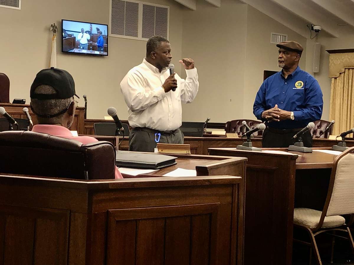 A small but dedicated group of military veterans met Thursday in Cruz Bay to hear ideas about a public display honoring their service. St. Thomas Senator Dwayne DeGraff hosted the town meeting at the St. John Legislature.