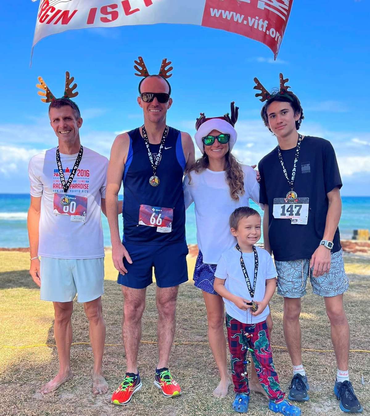 Nearly 40 runners were feeling festive on Sunday morning and got their jingle on at the Reindeer Run Half Marathon and 5K at Cane Bay. The holiday event was hosted by the Virgin Islands Triathlon Federation. After a short course talk, half-marathon runners were sent off to the east to the turnaro