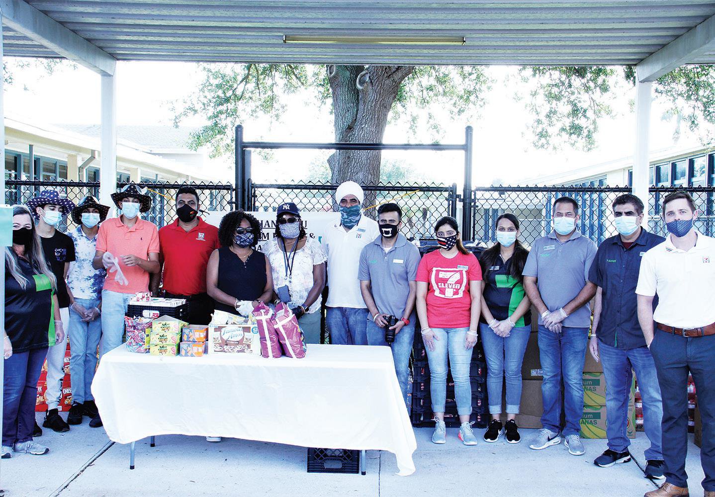 A food and backpack giveaway was held on May 28 at Turie T. Small Elementary School in Daytona Beach. Parents and their kids were treated to bags of food, water and book bags. Volunteers, who included local convenience store owners, are shown in the photo above.