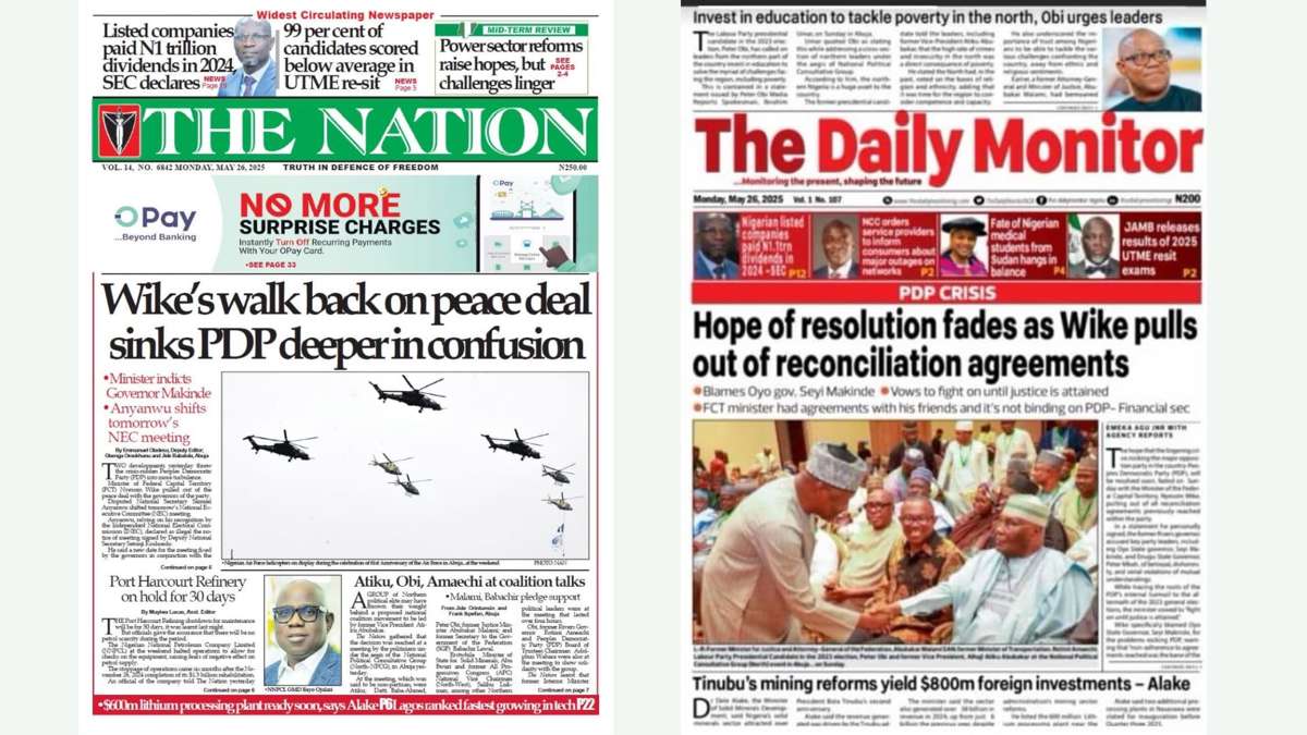The post Inside Nigerian newspaper headlines today - Monday, 26 May 2025 appeared first on Premium Times Nigeria.