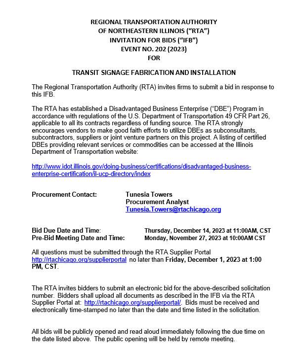 The post Legal Notice: Regional Transportation Authority of Northeastern Illinois appeared first on Chicago Defender.