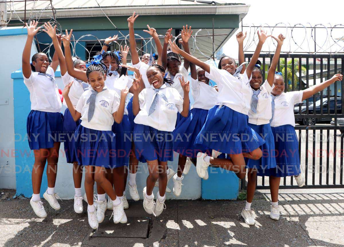 [caption id="attachment_1149035" align="alignnone" width="1024"] St Monica's Preparatory School students celebrate after sitting the Secondary Entrance Assessment (SEA) exam on April 10. - Photo by Ayanna Kinsale[/caption]