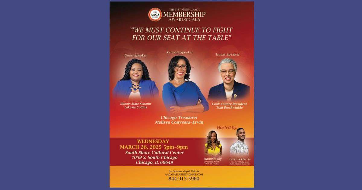 City Treasurer Melissa Conyears-Ervin to keynote Omar Shareef, president and founder of the African American Contractors Association (AACA), is hosting its 31st annual membership gala Wednesday, March 26, 2025, from 5 p.m.-9 p.m. at the South Shore Cultural Center, 7059 S. South Shore Drive, featuring City Treasurer Melissa Conyears-Ervin as the keynote speaker and guest […]