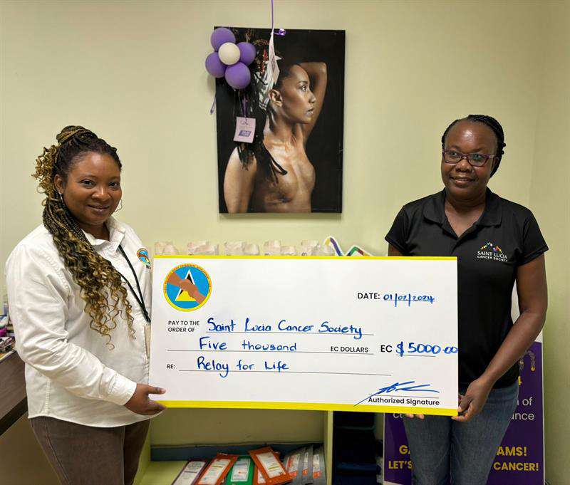 BELFUND'S GENERAL MANAGER, AMANDA DE LIMA, PRESENTED A GENEROUS DONATION OF FIVE THOUSAND DOLLARS TO OFFICIALS OF THE SAINT LUCIA CANCER SOCIETY