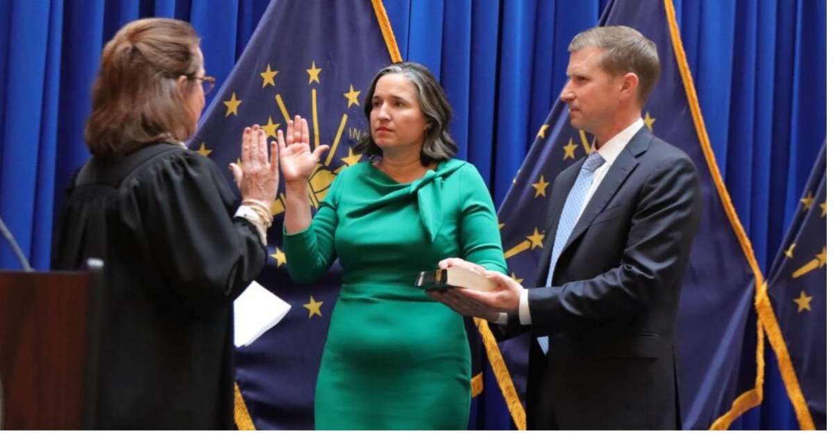 Photo caption: Auditor Tera Klutz takes the oath in January at the Statehouse alongside her husband. (Photo courtesy of Auditor’s Office) By Marissa Meador, IndianaCapitalChronicle State Auditor Tera Klutz will now be known as the State Comptroller to dispel the common misconception that the job of the state auditor is to audit — which has … Indiana now has a comptroller Read More »