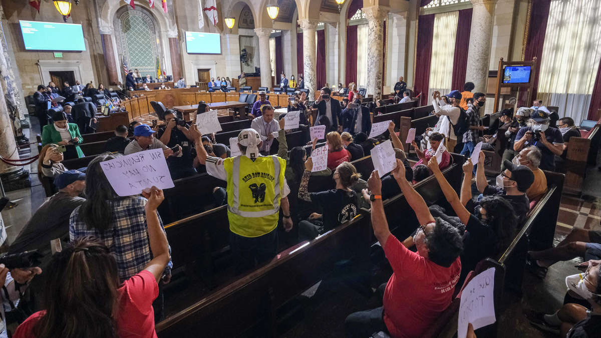 The resignation comes hours after protesters disrupted a scheduled Wednesday city council meeting inside Los Angeles City Hall.