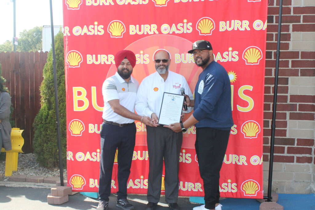 SHELL BURR OASIS owner Karan Sidhu (center) and Gary Mayor Eddie Melton (right) pose with a declaration noting that Saturday, October 5, 2024 as Customer Appreciation Day. Shell Burr Oasis has proudly been named the 2023 Fuel Dealer of the Year in the U.S., achieving this prestigious honor for the second consecutive year. This accolade […]