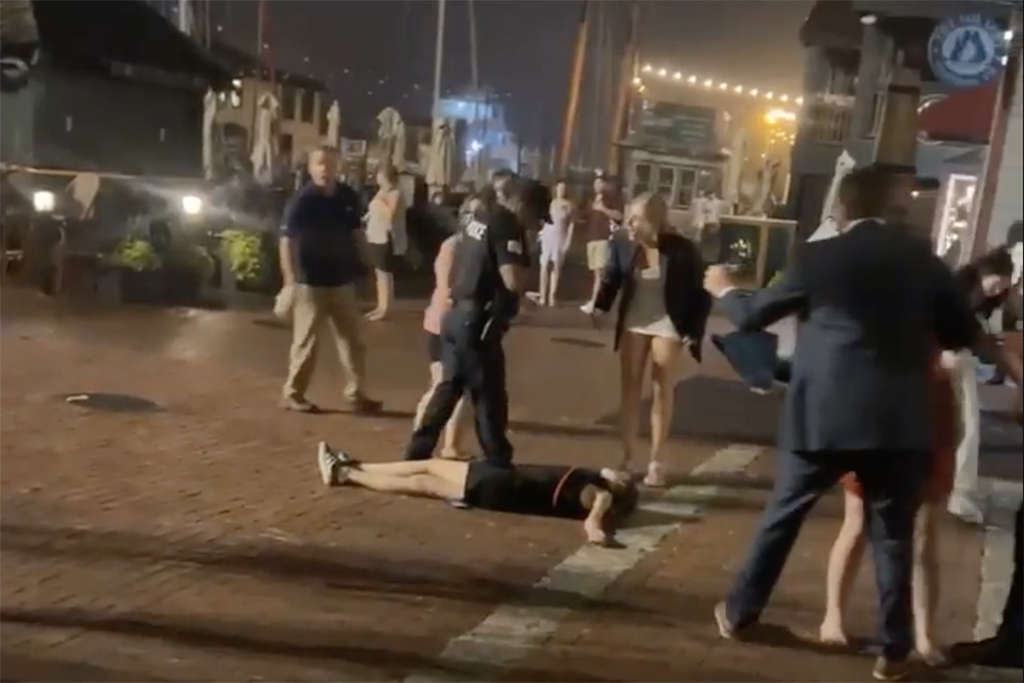 A viral video shows a group of violent white people fighting police officers outside of a wedding party in Newport, Rhode Island, and cops never reached for their guns once. What a privilege!